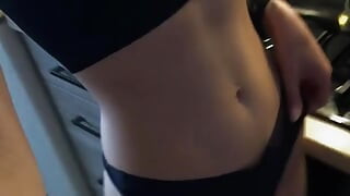 Istri memasak, pertunjukan pantat di dapur